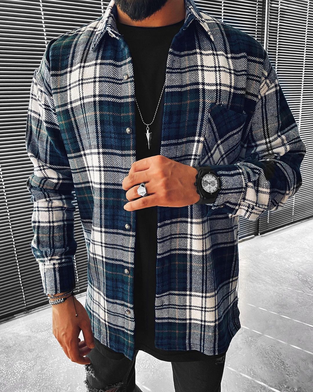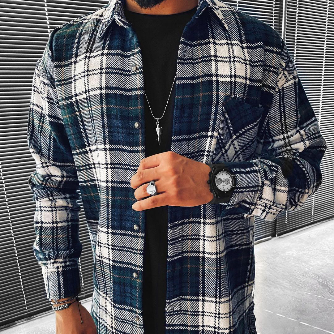 Casual Fashion Plaid Texture Long Sleeve Jacket