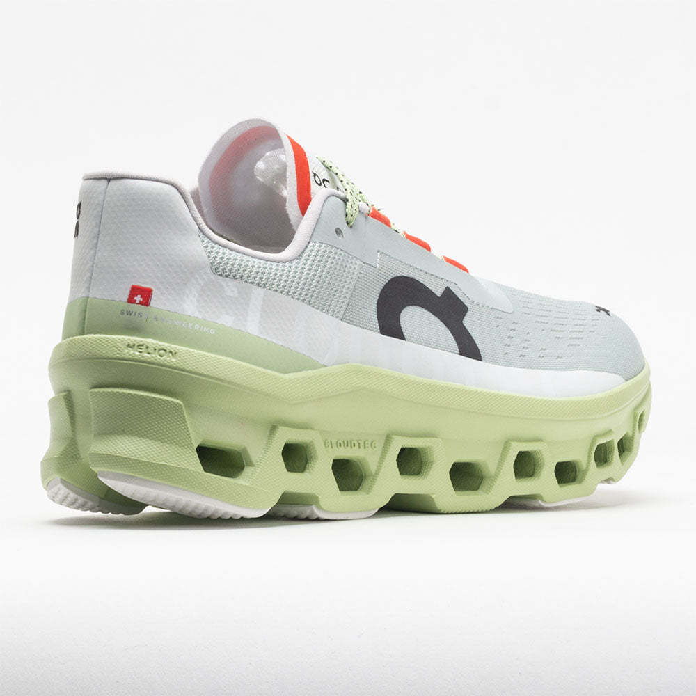 Meet the On Cloudmonster! Featuring the largest CloudTec® pods ever, this max-cushioned running shoe leads a beastly ride. Experience super soft landings on the Helion�?midsole while the signature Speedboard® supports explosive lift-offs. The radical forefoot rocker design keeps you rolling on longer runs. Made with recycled materials, the On Cloudmonster combines an eco-friendly approach and a sustainably soft ride.